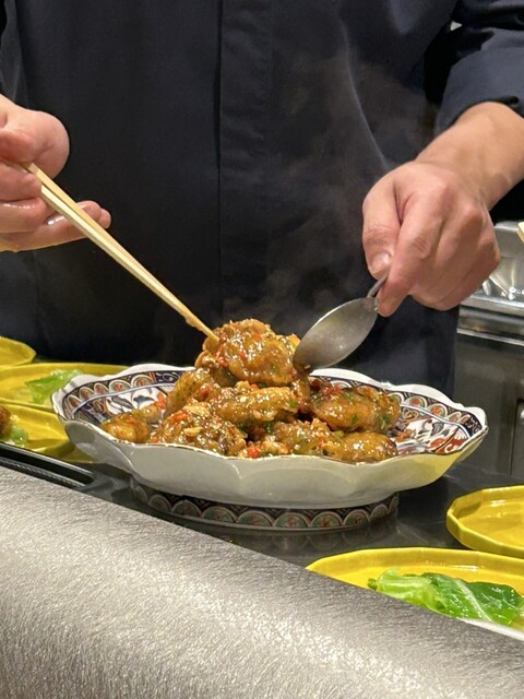 前菜はチャーシュー、よだれどり、くらげとウニ、鮑の蒸したの。みる貝炒め、鮑の焼売、大根と魚介の春巻き、そのほか、いろいろ。デザートは晩白柚をのせた杏仁豆腐、ライチ紅茶。全部美味しい。よい香り、美しい、美味しい。満腹、満足で帰路につきました。ご馳走様でした。