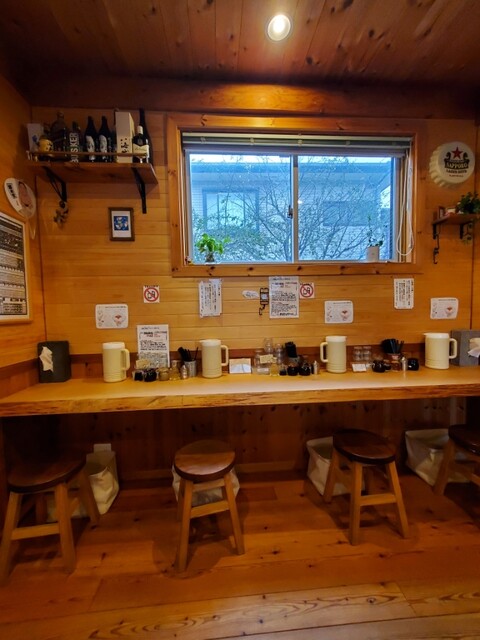 こちらはカウンター席。真ん中に4名のテーブル席、小上がりに丸いちゃぶ台の4人席があります。