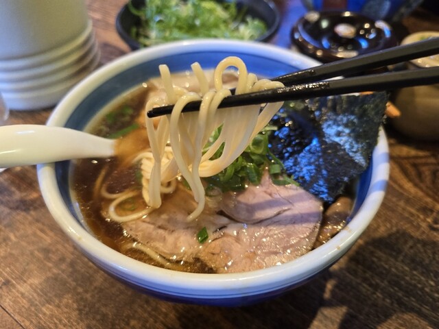 醤油ラーメンにネギ細切りをトッピング