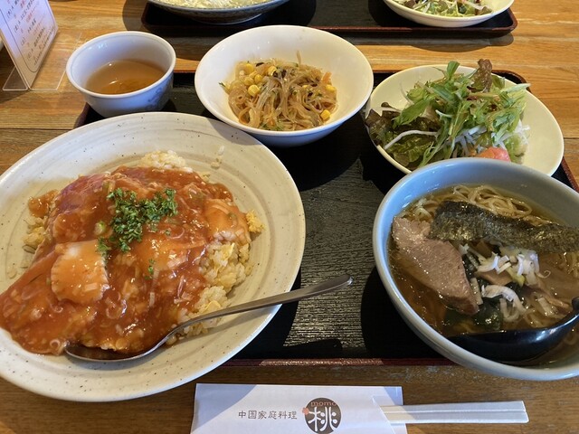 私は回鍋肉と青椒肉絲と担々麺が好きですが、本日は日替わりのハーフ麺とハーフの丼物(チャーハン)、サラダ、副菜が頂ける