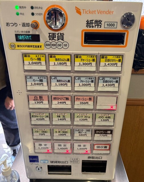 さて、醤油チャーシュー麺と味玉、白飯の食券を買い、1ロット目で着席です。