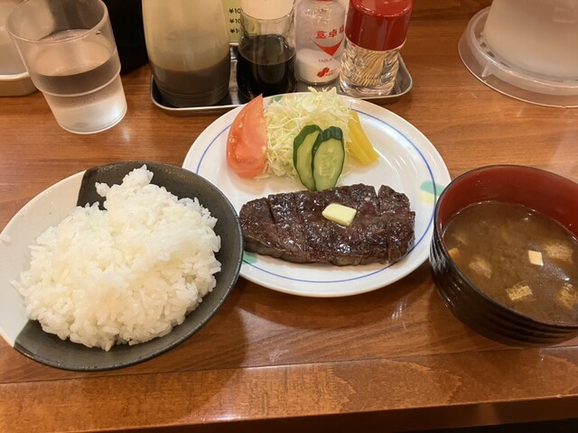 ラーメン一杯1.000円が当たり前のこのご時世に、やや小ぶりとはいえビーフステーキにご飯とみそ汁が付いて1..000円でいただけるコスパの良さ!