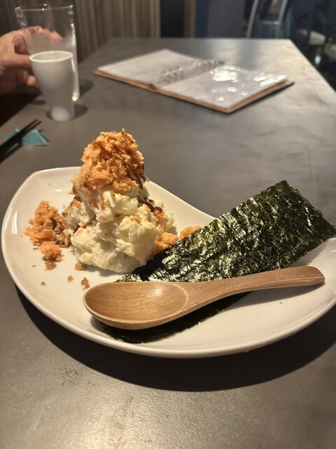カニのお味噌汁はいつも変わらず美味しい。豆腐は、わさびの風味が感じられるけど、ツンとくるほどではない。あとはもずく。
