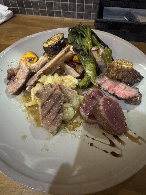ジビエロースト盛り合わせ(蝦夷鹿腿ロースト、ハクビシン腿ロースト、猪肩ロースのロースト、猪煮込み)