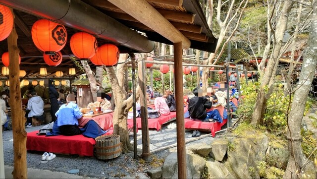 天気のいい休日はAM11時から「いろり山賊」の正面受付には大行列
