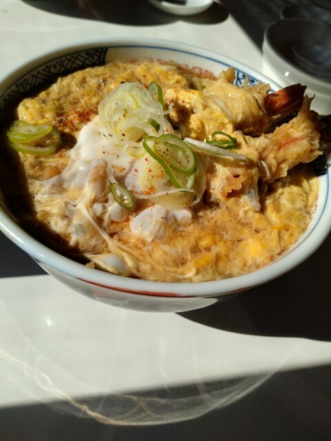 ランチメニューから天箱を頂きました。店内の他の席のお客様がほぼ皆このメニューを食べていたので間違えないと思い、つられてしまいました。天然の海老と野菜の天麩羅を、タレがしっかりしみたご飯と一緒にほおばり...