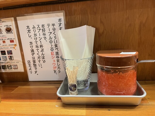 紅しょうがを適度に加えて、まぜまぜカレーで最後まで美味しくいただきました。