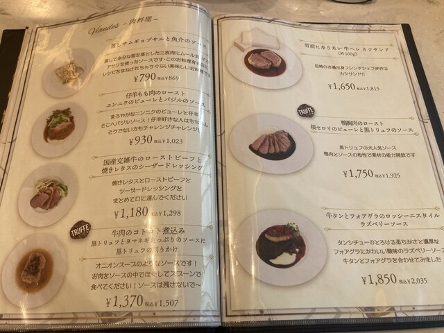 メニューも異なっていて、こちらはトリュフを用いた料理が多いです。