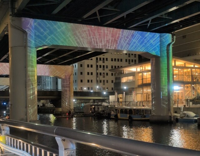 OSAKA リバーファンタジーは日没から22時。期間は2026年4月頃まで常時演出されるみたいです。