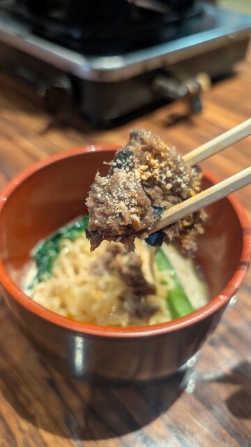 店内は馬肉料理専門店なのでお通しは大きな馬肉が入った冷やし担々麺。
