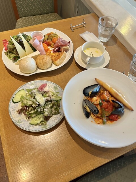 前菜は、レモンソースでスッキリ。オニオンスープにお魚は鯛、パンもお代わりが出来ますが食べすぎてしま...