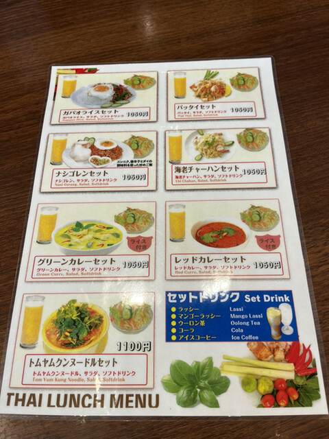 カレーだけかと思ったら、タイ料理のメニューもあり迷ってしまう。
