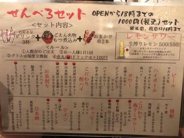 せんべろは3杯と串2本です。