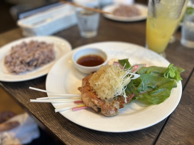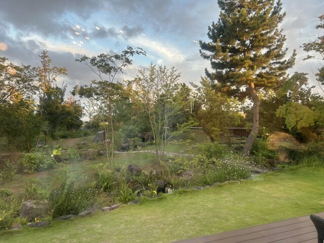 4人とも違ったメニューをオーダーチーズがかかったハンバーグやフォアグラハンバーグ、チキンも柔らかくて美味しかったです。白米雑穀米パンから選べます。庭園もとても素敵で癒されました。庭園を散策している時彩雲が見えて更にラッキー✌️でした♡