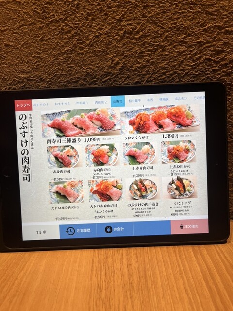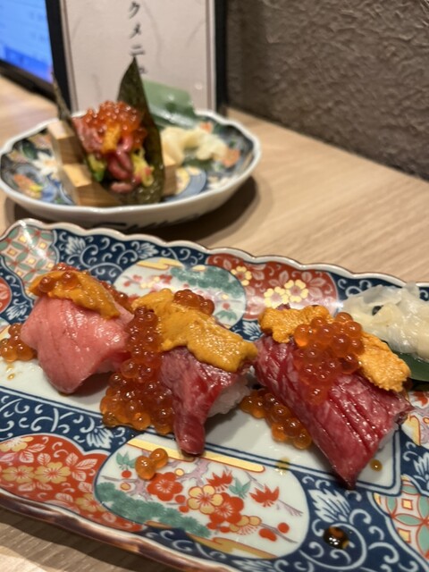 肉寿司3種盛り(うにいくらがけ) 1,399円