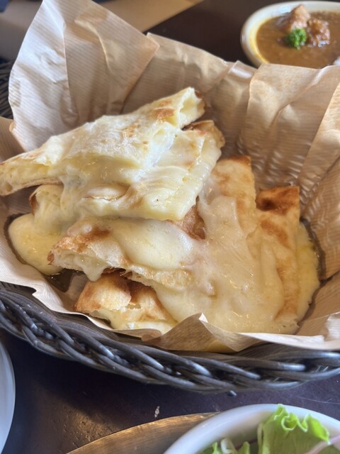 チーズナンもナンからはみ出るほどのチーズたっぷりでした!