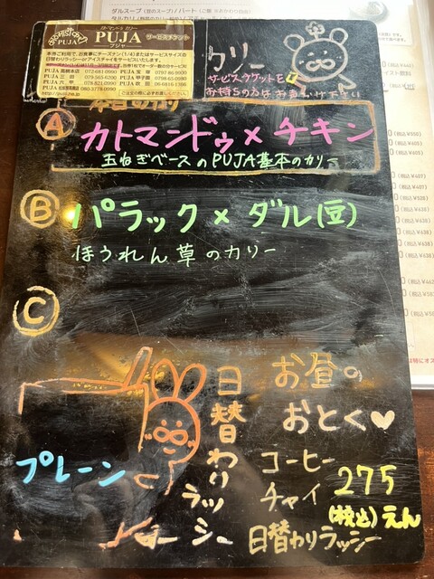 日替わりカレーは玉ねぎペーストのカレーはクリーミーで、ほうれん草と豆のカレーはネパールカレーらしくて好みすぎました!