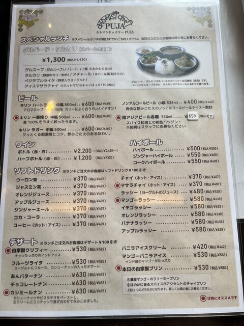 メニューはカレーのナンかカレーライスに、ビリヤニやチャウメンとネパール料理が豊富でした!