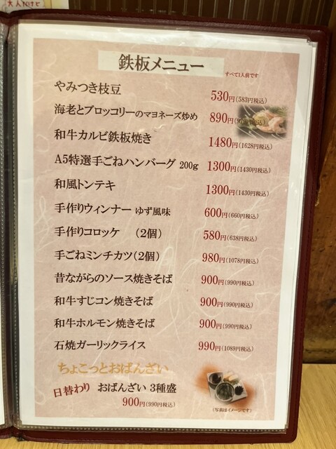 トンテキ、焼きそば、海老とブロッコリーの炒めものから枝豆、山芋フライとお酒のおつまみ系まで豊富✨