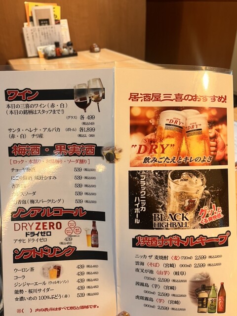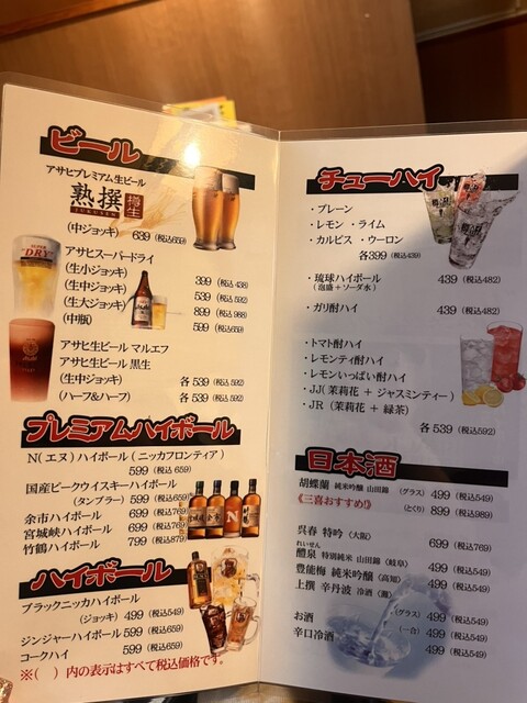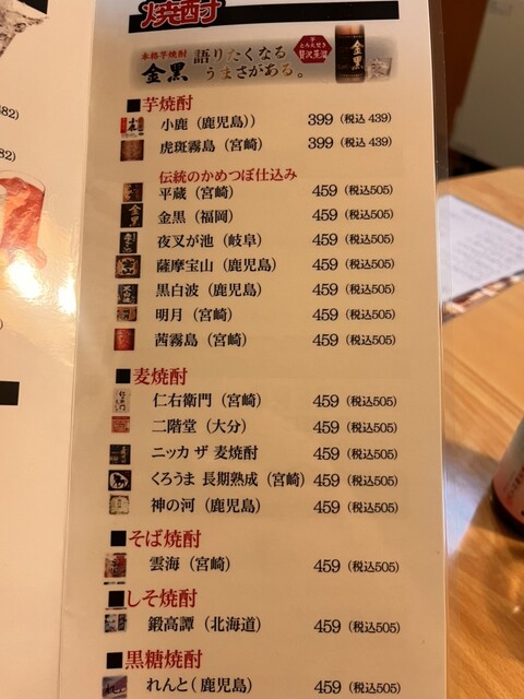 お酒もビール、ハイボール、日本酒も種類が豊富で、焼酎の数も多かったです!