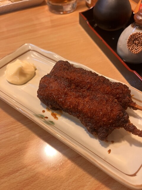 メニューの中でも特にお気に入りは手羽辛パンチとうな玉串です!手羽辛パンチはスパイスの効いた手羽先でお酒に合う1品!うな玉串は卵焼きの上に鰻がのっていて贅沢な1品だけど、769円とリーズナブルでした!卵はぷるぷるで鰻も美味しかったのでぺろりでした✨