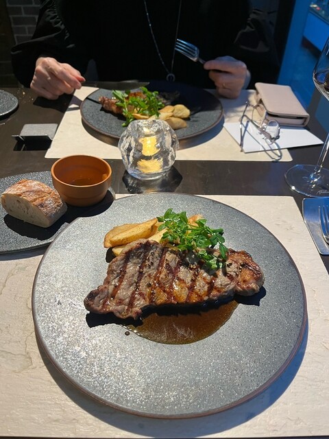 おかわり可能なパンと、ホクホクのポテトがあいます。お肉は硬くなくて、普通に美味しいです