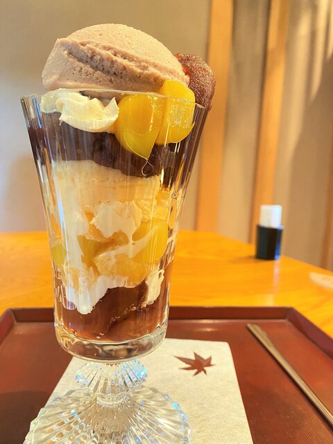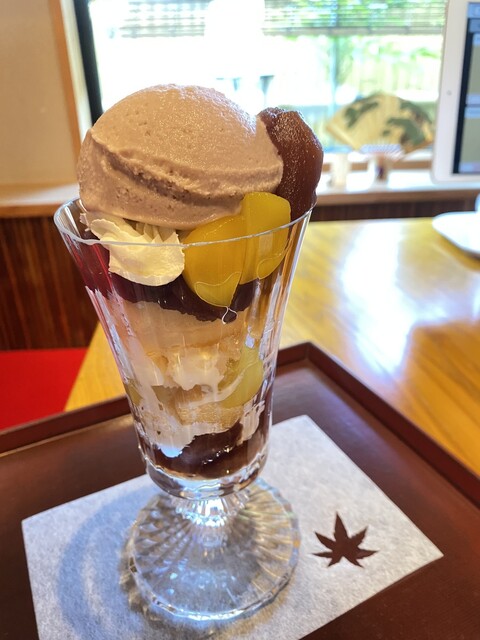 丹波栗、手作りカステラ、生クリーム、非常に完成度が高いパフェ!