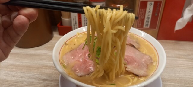 豚骨と煮干しのスープを使ったラーメンで、濃厚だけどクドクないスープが良い感じ。ラーメン自体こボリュームが結構ガッツリで、ラーメン一品だけでもお腹いっぱいになる。ガッツリの昼食を摂取したい人には嬉しいお店。