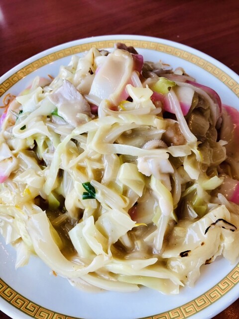 ・炒麺は皿うどんとよく似ていて、パリパリの麺の上からちゃんぽんの具材と絡めた餡が麺と溶け込み、柔らかい部分とパリパリした食感が混合し、病みつきになる一品!