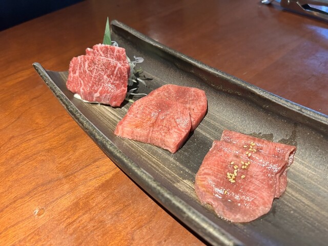 (左ハラミ、中央厚切りタン、ネギタン塩)