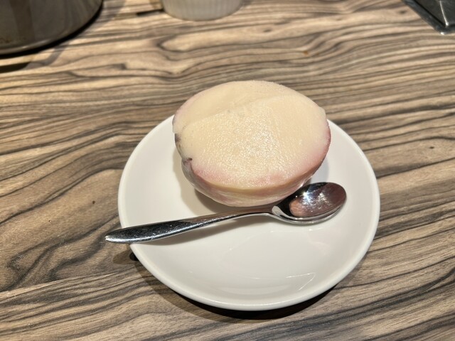 種類は4,5種くらいあってその中で白桃シャーベットを頼んで食べてみると、今まで食べた脂が押し流されるようにすっきりとした桃の味わいでとても美味しかった!