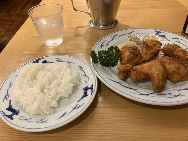 溜池山王の「雛どり」を東京名物の店に挙げましたが、こちらも東京名物に変わりはありません。衣の味付けが絶品。肉も上品。抜群の安定感です。「鳥の唐揚げ」に「サラダセット(ライス付き)」を注文。ちなみに、「カキフライ」も名品だと思っています。