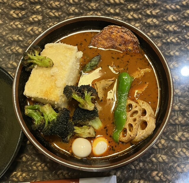 柔らかな豚肉と野菜、そしてタフゴレン(揚げ出し豆腐)と、コクのあるスープカレーがマッチしてウメエ!アゲアゲのブロッコリーが良いアクセントになりますね。