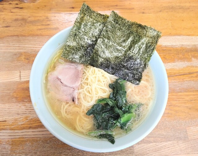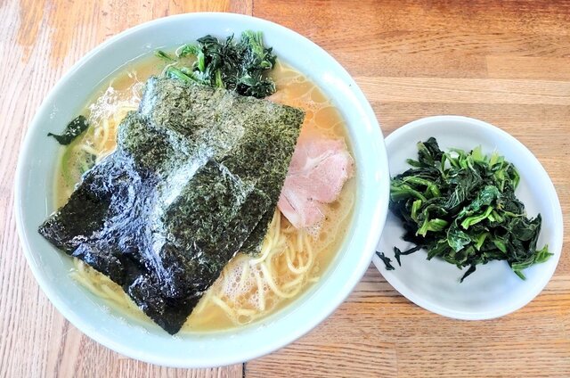 スープの濃さが麺とよく合い、トッピングのほうれん草や海苔がまた風味や食感を底上げしてくれるのが堪りませんね。