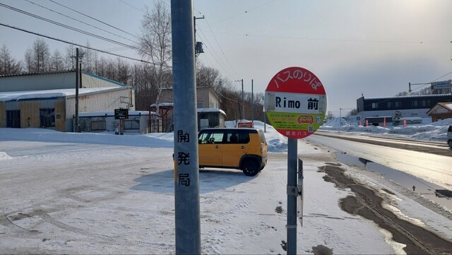 目の前のバス停が店の名前になっています。