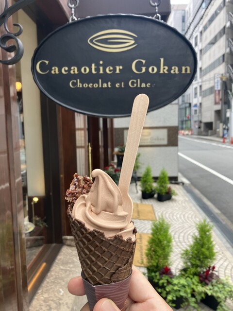 先物市場でカカオが高騰、スナック菓子類のチョコも実質値上げ(爆上げ)と言うこともあり、慌てて訪問。相方が以前に2階にあるレストランでシチューを食べたと言うことで店舗そのものは知っていましたが、実際に手土産を買っていくのは初めて。次に来る時は絶対値上がりしてるであろうから(笑)ソフトクリームをテイクアウト。品の良いチョコが、蒸し暑い外の天気を一瞬忘れさせてくれます。