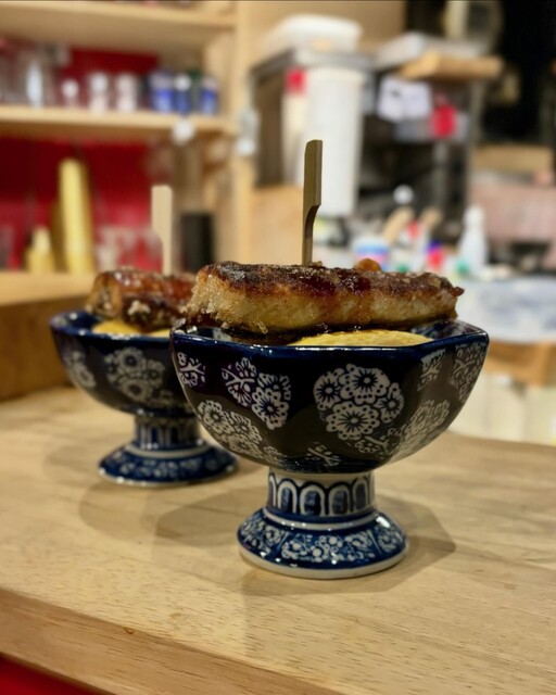 ラテはなめらかで濃厚で、アクセントの奈良漬も最高でお酒が進みます✨