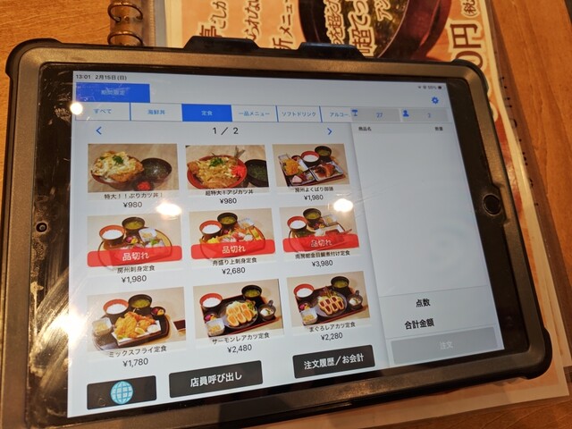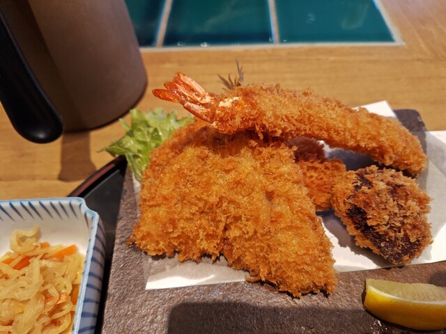 ミックスフライ定食¥1780ととみうら丼¥1980を注文。前回はジャンボフライ定食が¥1580だったみたいなので、当たり前だけど値上がりしています。