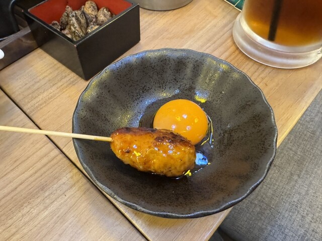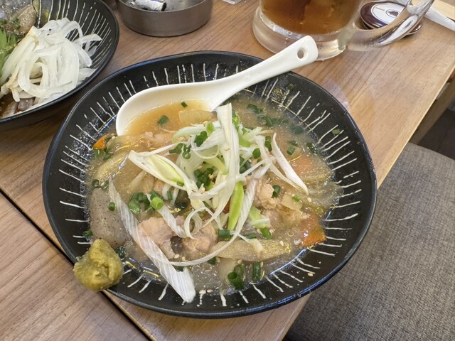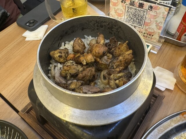 野菜串と明太ポテサラ、サケキタル煮込み、炭地鶏釜飯などいただきました。