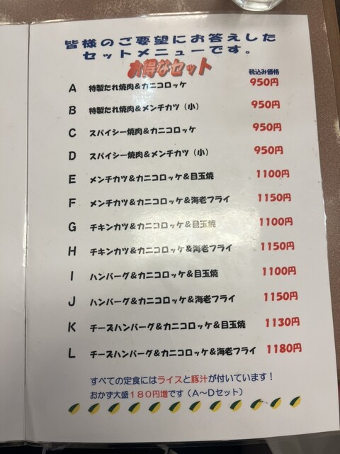 メニューがたくさんあって選ぶ時間も幸せなんだけど、あたいが頼んだのはJエビフライ+カニクリームコロッケ+ハンバーグ!