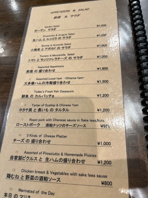 ❷大多摩ハムの冷製盛り合わせ ¥1500
