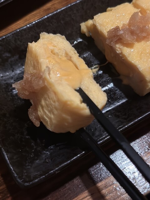 まず印象に残ったのは「サイコロステーキ」。絶妙な火加減で中はジューシー、外は香ばしく焼き上げられていて、肉の旨味をしっかり感じられる一品。ビールとの相性も抜群です。続いて人気の「チーズ入りだし巻き玉子」は、ふわふわ食感にチーズのコクが加わり、優しい味わい。居酒屋の定番ながら完成度が高く、お酒のつまみに最適でした。