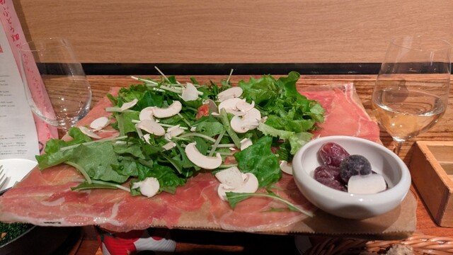生ハムは結構なボリュームで、「食べきれるかな?」と思ったけど、塩味もちょうどよくてペロリと食べれました。お酒にも合います。生ハムには、サラダトッピングをして、トッピングして良かったなと思いました!