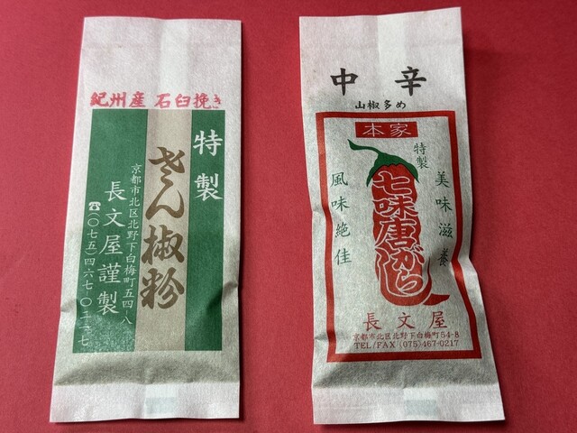 山椒多めの「七味」と石臼挽きの「山椒の粉」を買いました