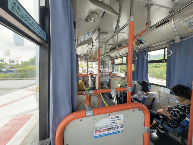 ・名護では10:30発の67番に乗ります。片道970円。現金のみです。大兼久というバス停で下車します。帰りのバス停は反対側です。乗客はおじいおばあ、ばかりでした。