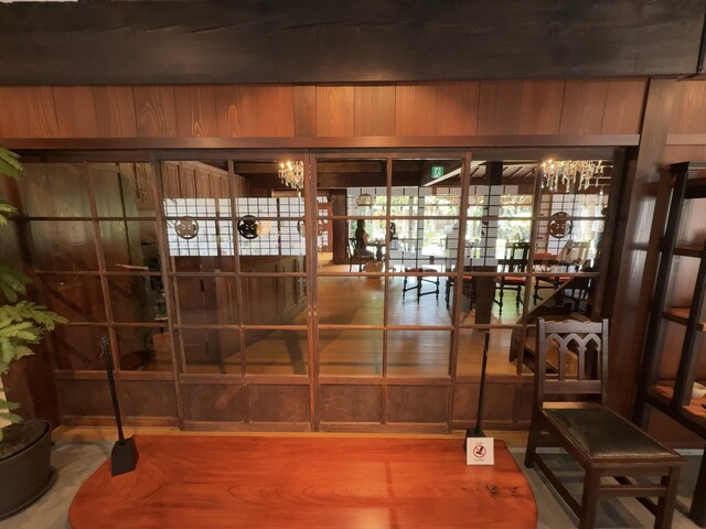 貸切状態で、一番前、内庭に面したテーブルにリザーヴのお印が。