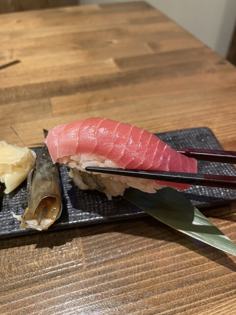 お寿司は一貫ずつ注文可能。どちらもさんじおすすめのお寿司。お酢は控えめでお米の味が引き立って、ネタの良さがわかるお寿司。