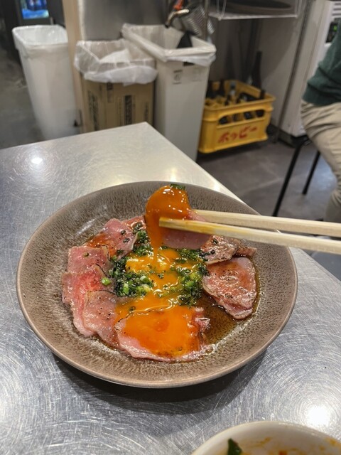 毎日芝浦から直送しているお肉がとっても新鮮で、刺しもめちゃくちゃ美味しかった塩やニンニクなども追加可能♀️