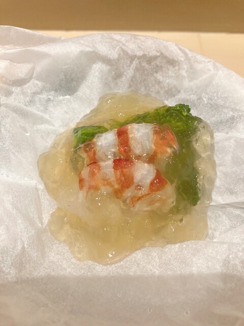 干し柿に似てます、甘い柿とフォワグラがパリパリの最中に挟まれてます。