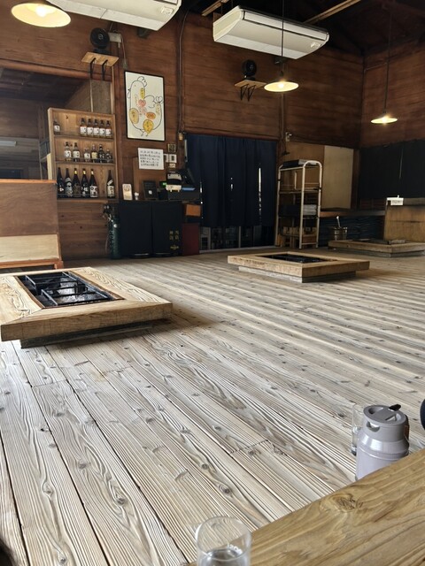 一階路面店、床に炭火焼きテーブルがあります。赤ちゃんは炭火焼きテーブルに注意して下さい。